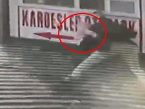Bursa’da buzlu yolda dengesini kaybederek kucağındaki kızıyla birlikte düşerken, bebeğinin zarar görmemesi için refleks gösteren baba kameraya yansıdı.